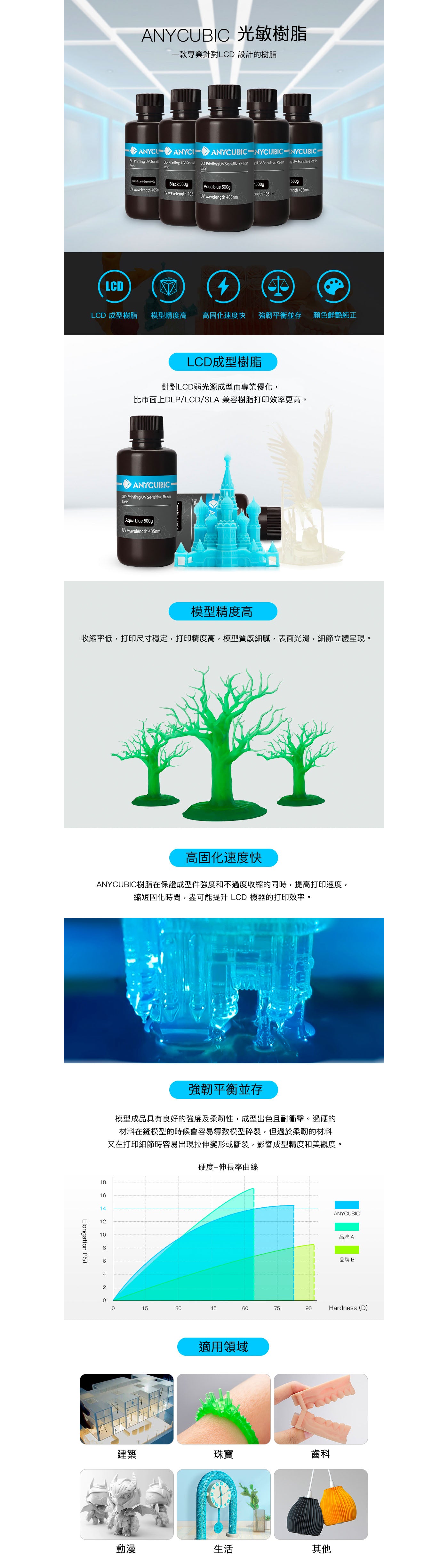 3D打印機耗材 | Anycubic Colored UV Resin 光敏樹脂 500G
