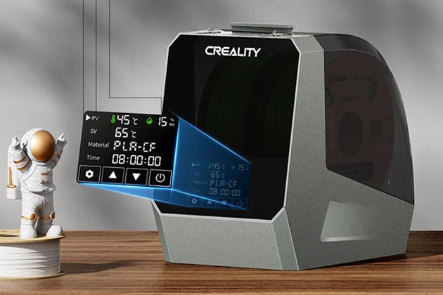 太空盔線材乾燥箱盒可快速升溫,內置風扇,在腔體內進行360°熱風循環,受熱均勻,可有效乾燥潮濕的耗材,提升打印效果。