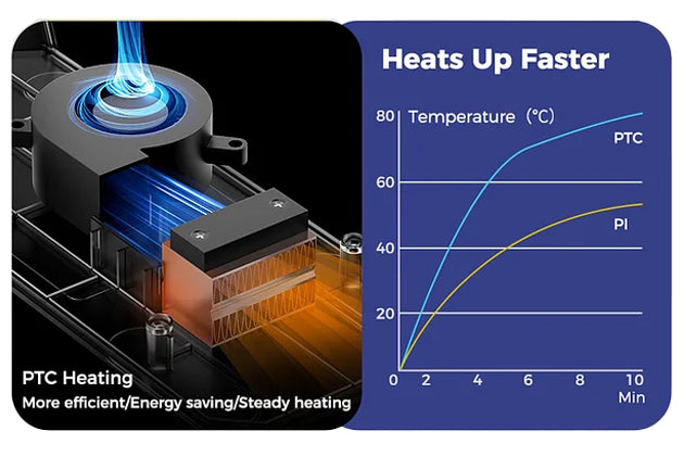 太空盔線材乾燥箱採用110W FTC 加熱器來加熱空間,這一特點使我們脫穎而出。大多數線材乾燥箱使用 PI 加熱墊,往往會導致加熱不均勻,而PTC 加熱器則不同,它能確保均勻乾燥。這種PTC 加熱器不僅耐用、節能,而且環保。