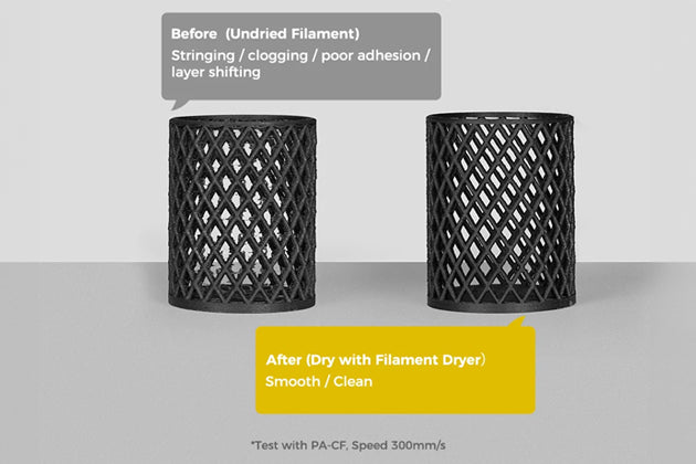 潮濕的3D打印耗材可能會導致拉絲、堵塞、附著力差和層移位等問題。