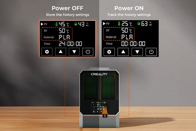 斷電後重新啓動機器,仍能記憶您之前的材料及溫度,無需重復設置,快速開始乾燥