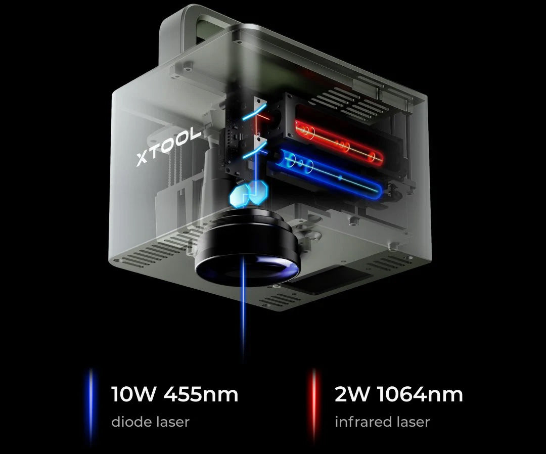 2W 1064nm 紅外鐳射將雕刻能力擴展至所有金屬與塑膠,進一步拓寬了可雕刻材質的範圍。