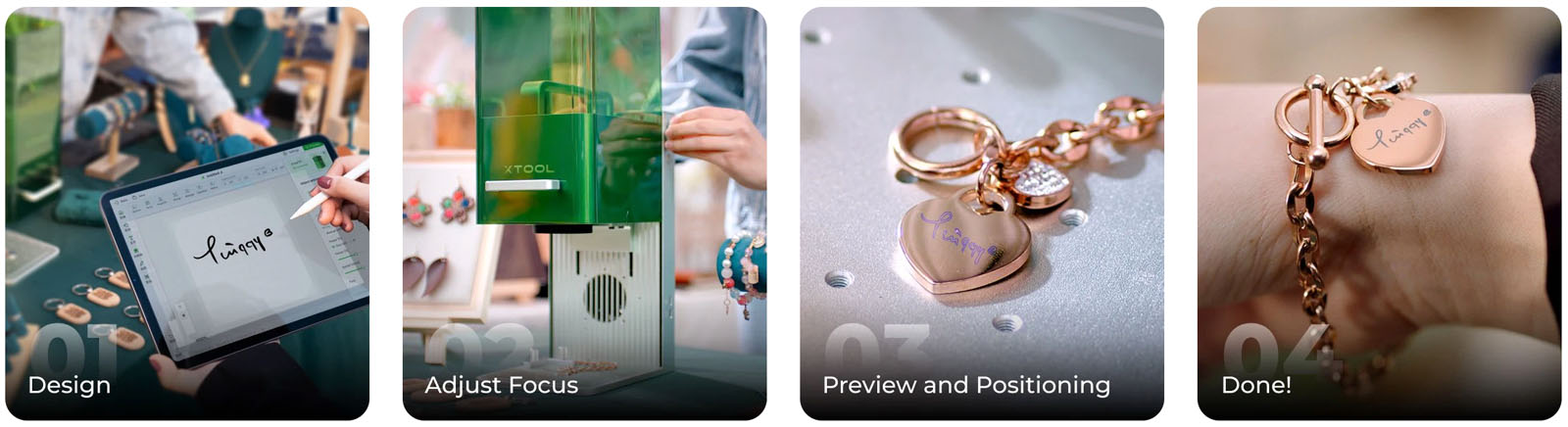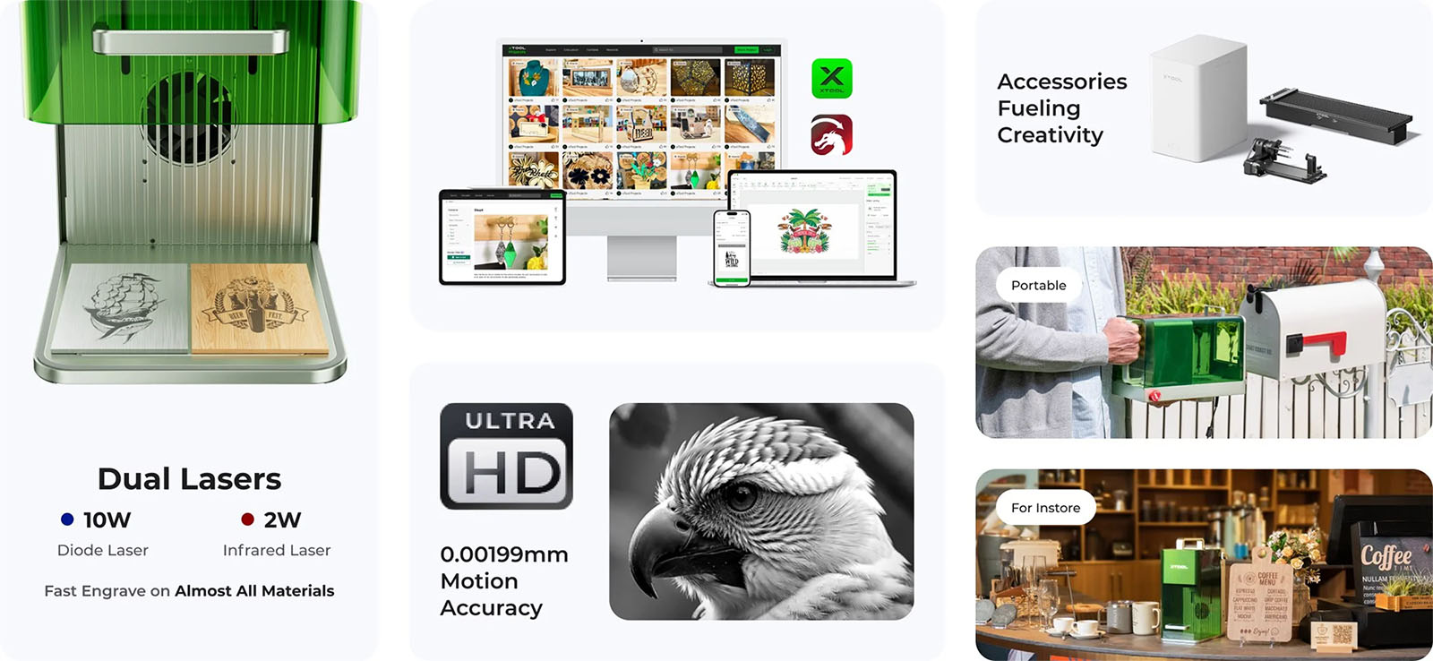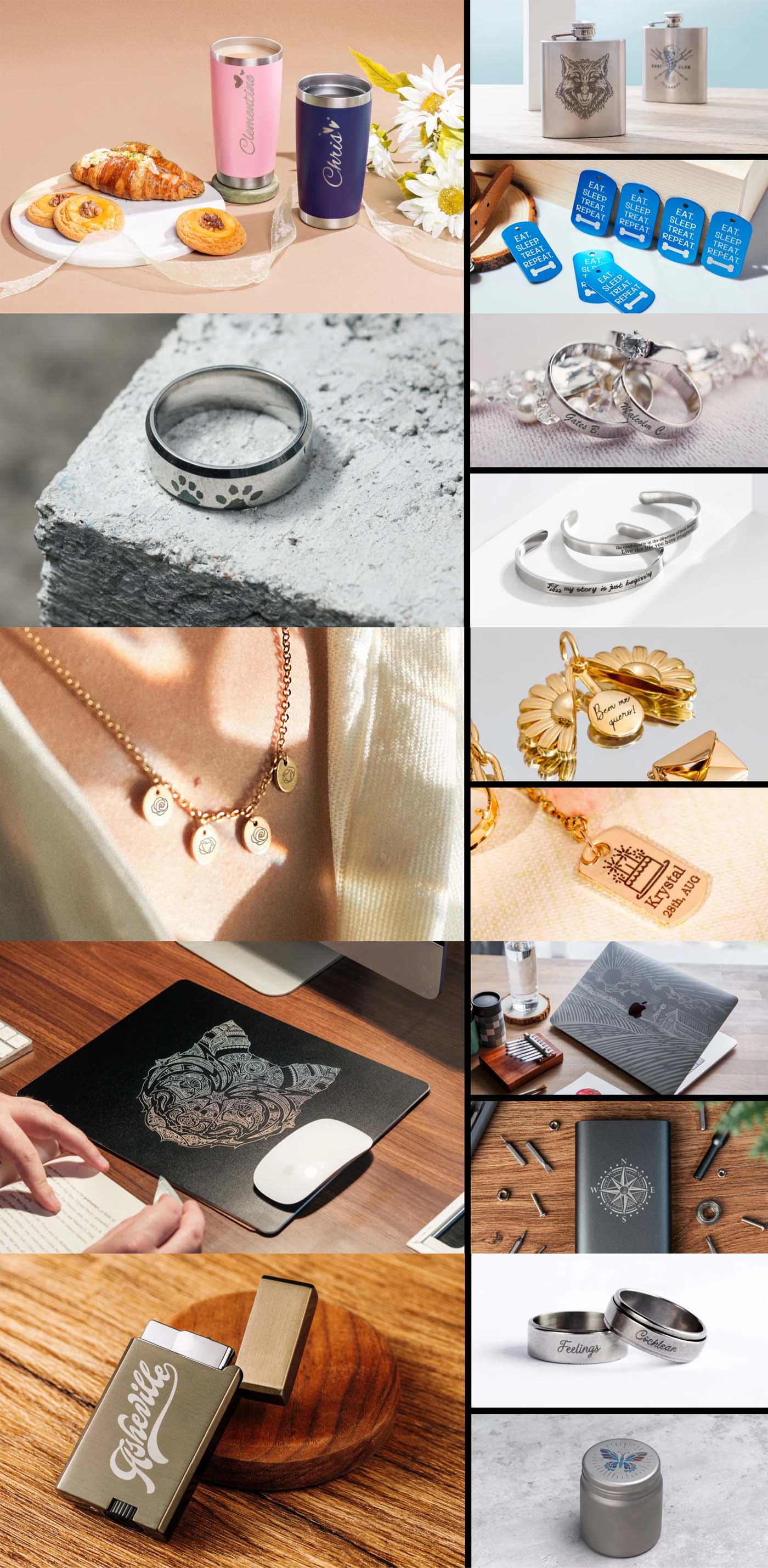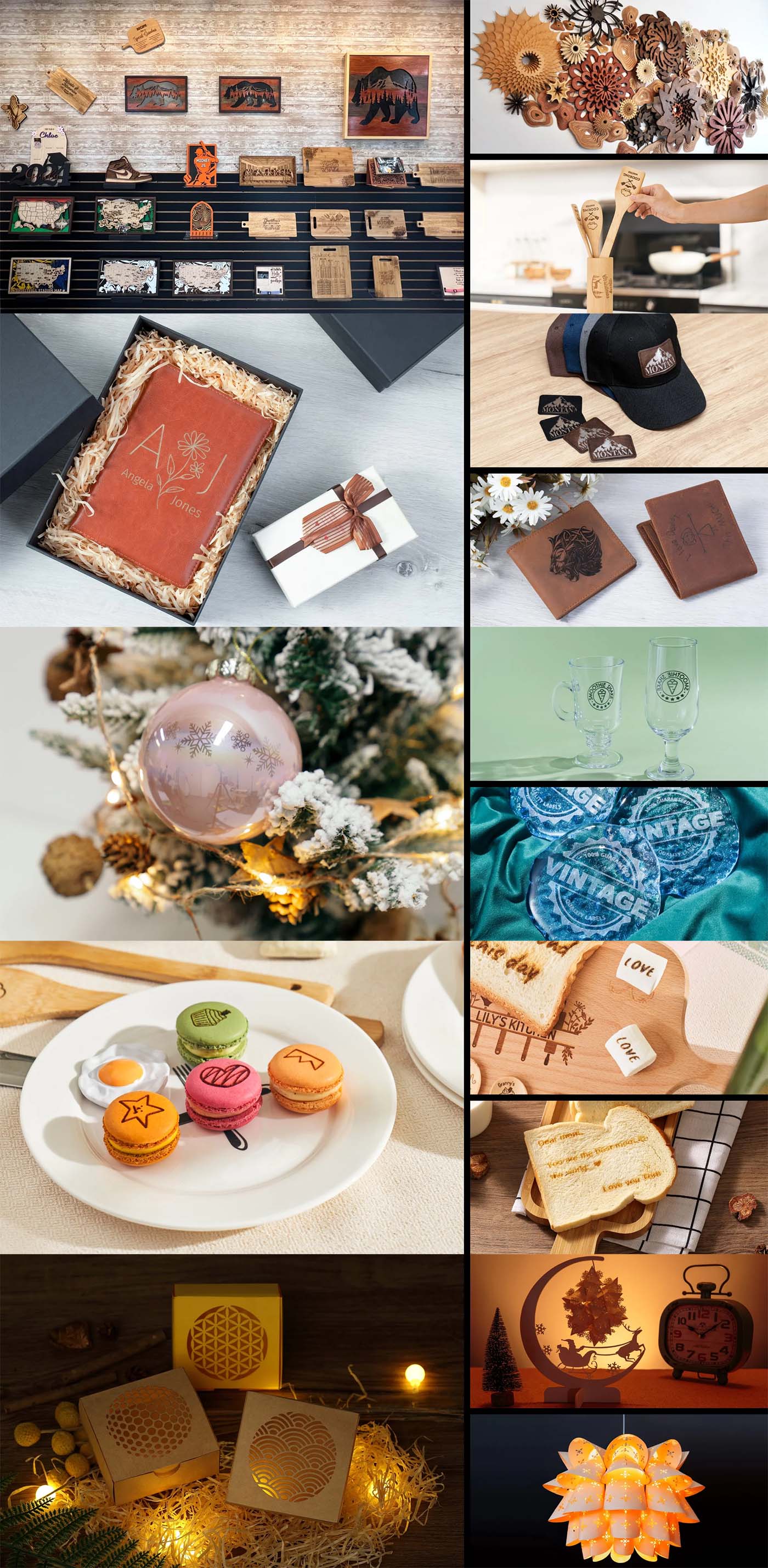 • 支持幾乎所有材質:雙鐳射技術,可雕刻金屬、木材、皮革、深色壓克力、石材等多種材質。