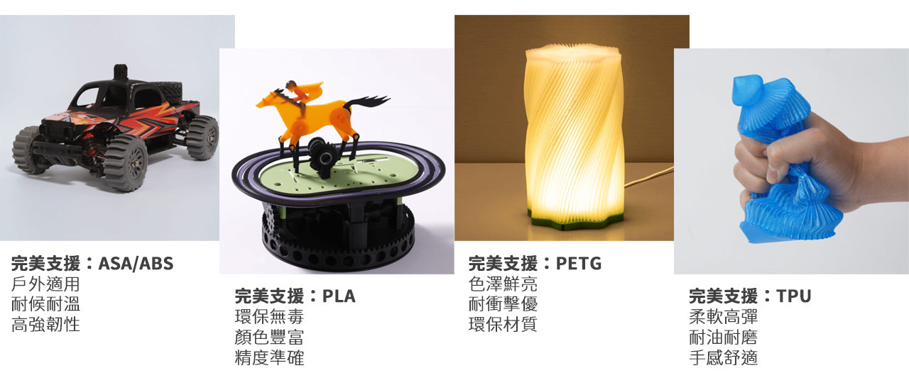 完美支援PLA/ABS/ASA/PETG/TPU耗材