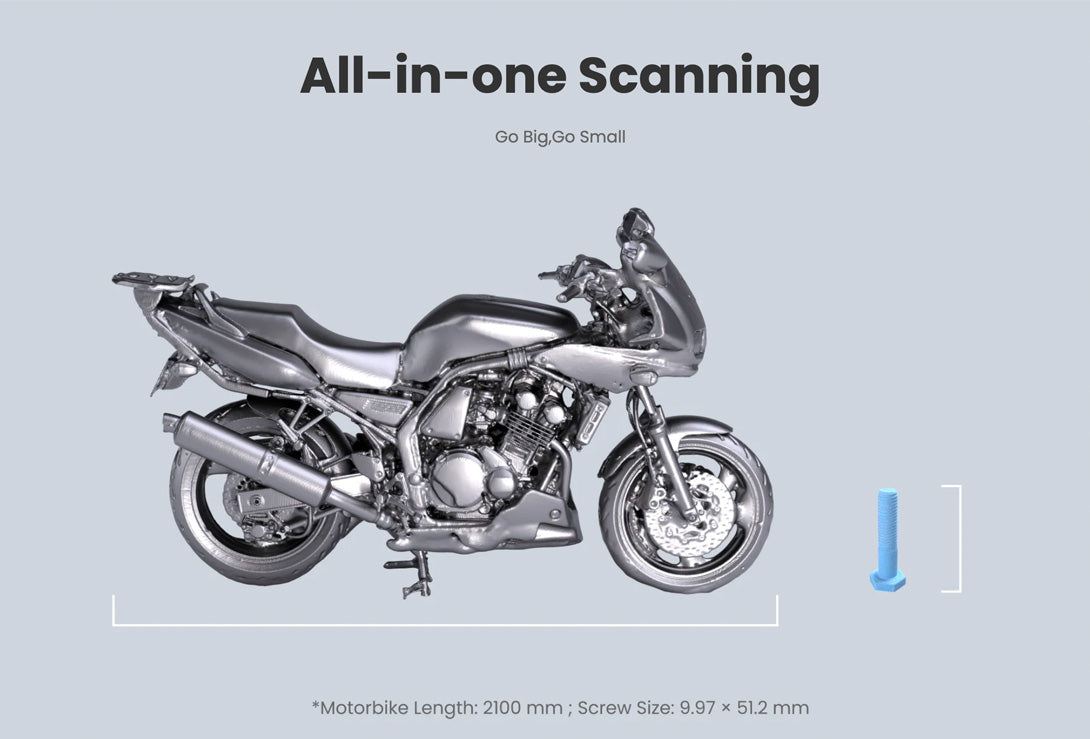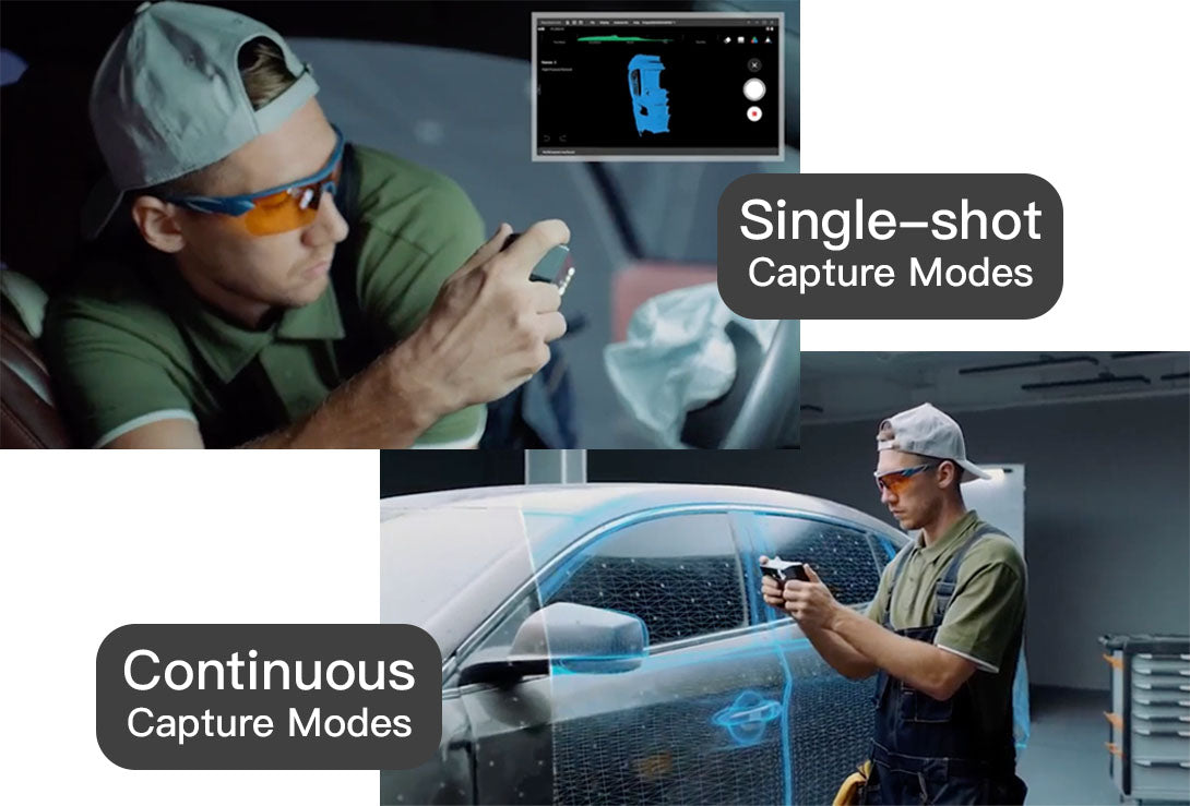 連續掃描以每秒最高 20 幀的掃描速度,快速建立小物體或大物體的 3D 模型。