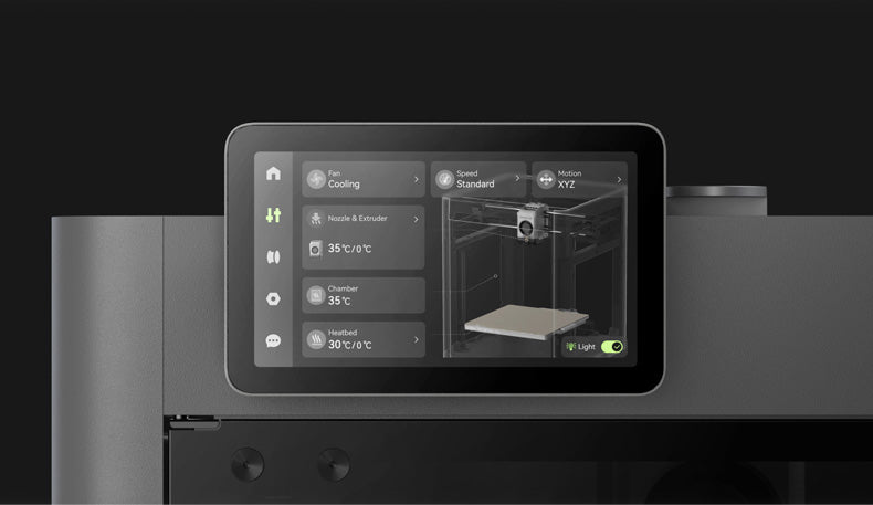 P2S 有著自適應空氣循環系統,能有效在印表機內部存住熱量,打印易翹曲的工程耗材更輕鬆。同時,透過高性能多效過濾器主動過濾內部空氣,確保工作空間內的乾淨與安全。