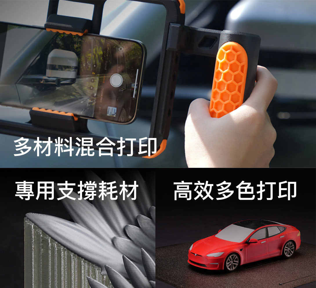 支持耗材類型PLA, PETG, TPU, PVA, BVOH, ABS, ASA, PC, PA, PET, Carbon/ Glass Fiber Reinforced PLA, PETG, PA, PET, PC, ABS, ASA, PPA-CF/GF, PPS, PPS-CF/GF支持