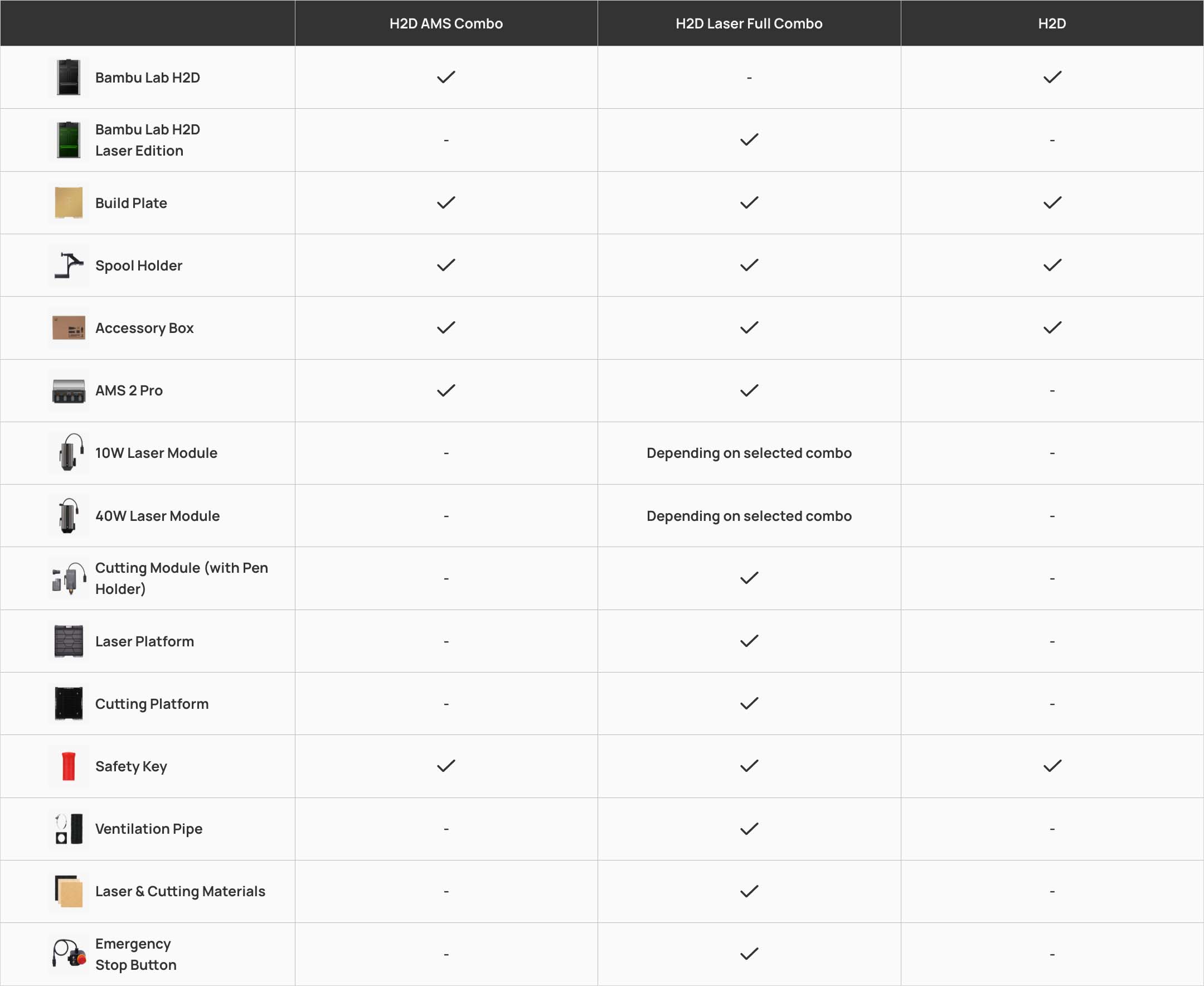 鐳射激光激光類型無激光模組。支持通過未來發售的激光升級套裝升級為帶激光功能版,但升級後氣泵部分結構與 H2D 激光版不同。半導體激光器