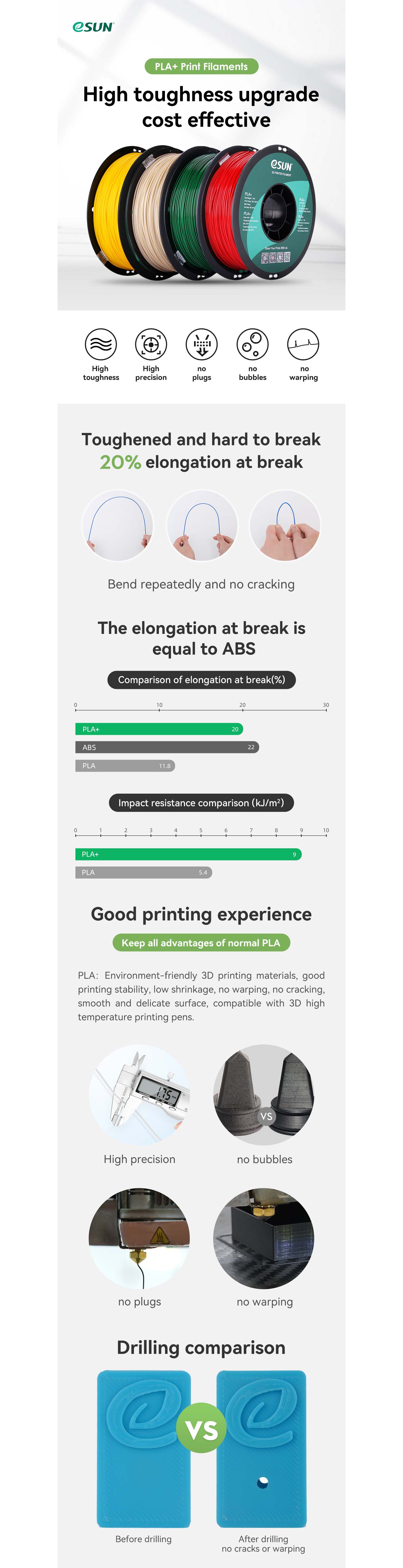 PLA+是一款基於PLA材料改性而來的環境友好型材料,通過FDA認證,使用更安全。易打印,提升了韌性和層間結合力,非常適合功能性零件打印。