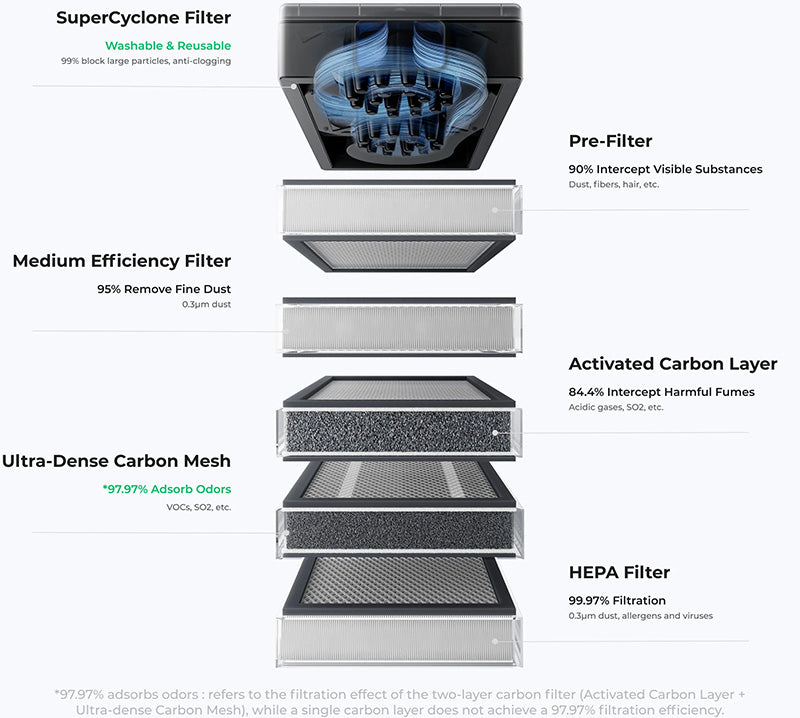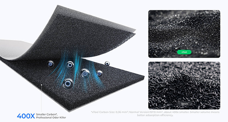 將濾芯內的碳粒子排列成高密度結構,其顆粒大小僅傳統材料的1/400,實現更強效吸附。