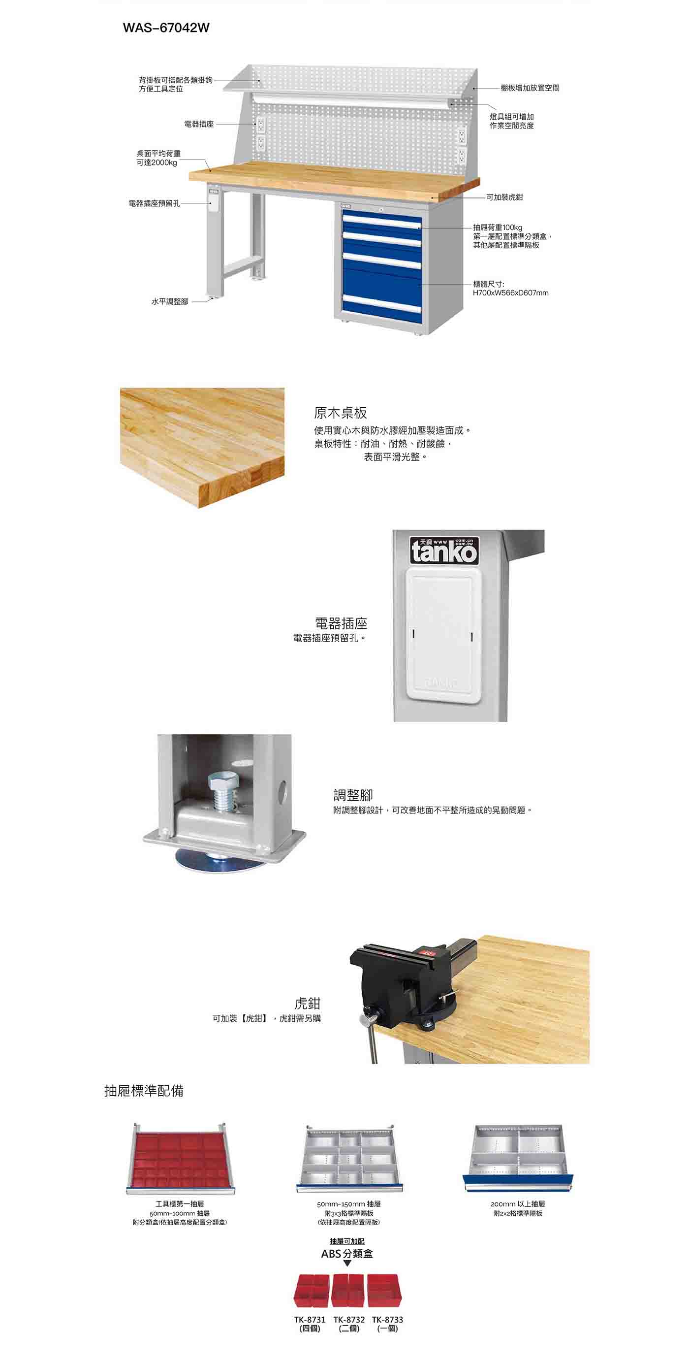 工具桌搭配實木桌板使用實心木與防水膠經加壓製造而成。
